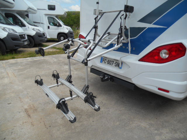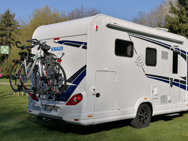 A lowering bike rack, electric step and mosquito nets on the accommodation door all make life on the road easier and more comfortable