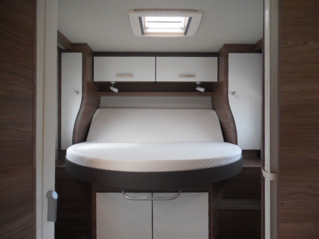 – Massive, central bed giving easy access from both sides so no more climbing over your other half or slithering out of the end of the bed during the night. The “Evopore” mattress is incredibly comfortable too – we have never had a better night’s sleep in a motorhome.