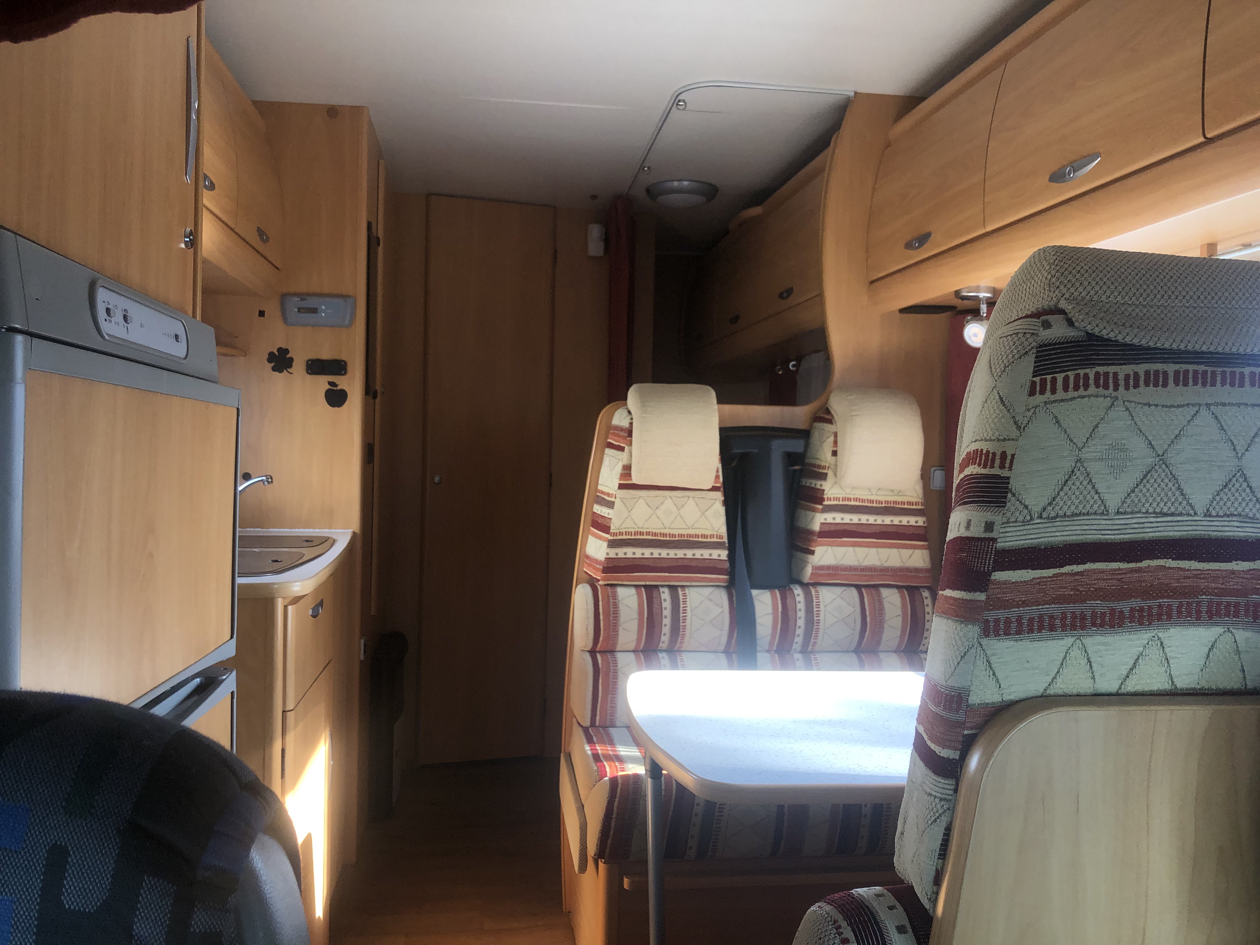 1 camera de recul, micro ondes, télé, anthène hertienne + manuelle, panneau solaire 100w, store 3m50, porte vélo x4, radar de recul, convertisseur 1200w, atelage, marche pied manuelle, chauffage route.
